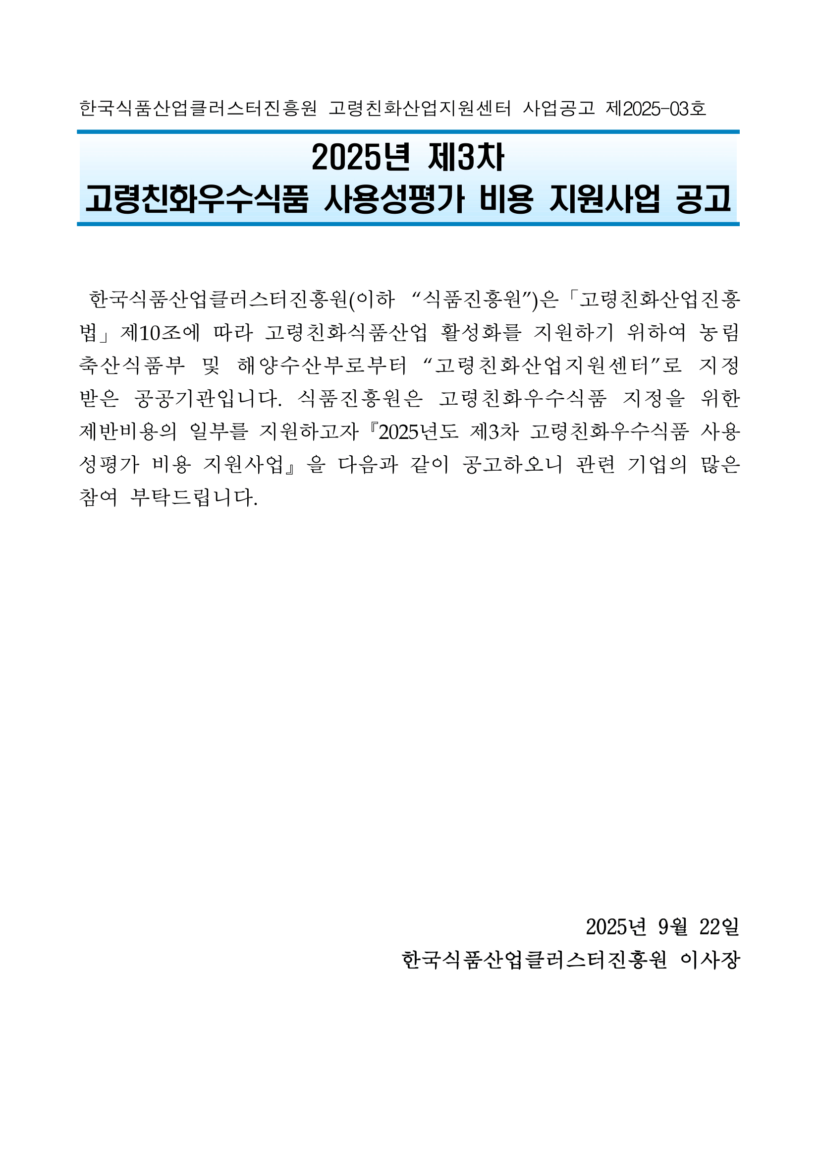 2025년 제3차 고령친화우수식품 사용성평가 비용 지원사업 공고.hwp