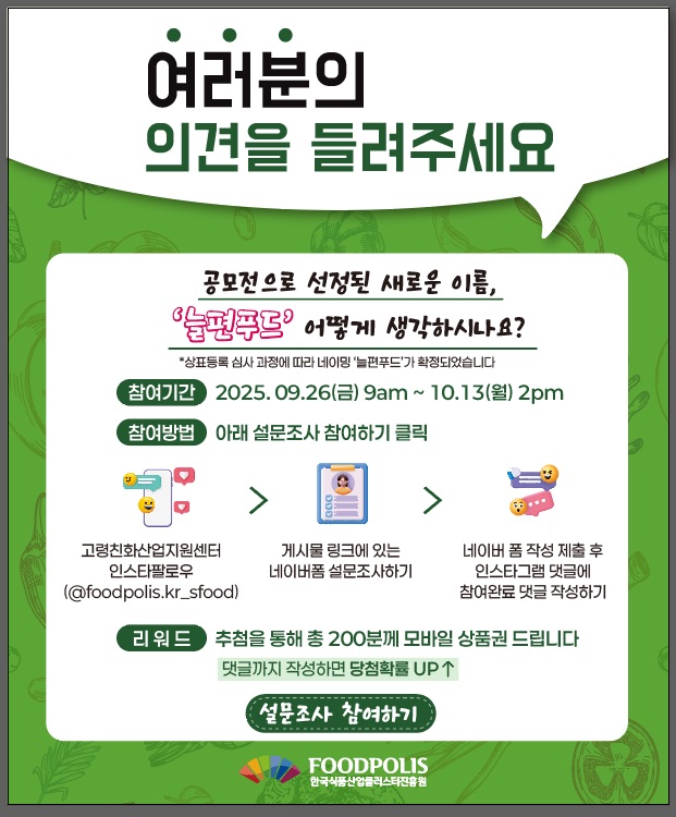 고령친화우수식품 새로운 이름 “늘편푸드” 설문조사